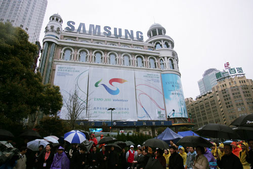 3月27日上午,“志愿世博 文明上!敝袊(guó)2010年上海世博會(huì)志愿者標(biāo)志、口號(hào)、歌曲發(fā)布儀式暨迎世博、講文明、樹新風(fēng)“三五”志愿服務(wù)集中大行動(dòng)在上海市五卅紀(jì)念廣場(chǎng)隆重舉行。中共中央政治局委員、中共上海市委書記、上海市世博會(huì)籌辦工作領(lǐng)導(dǎo)小組組長(zhǎng)俞正聲出席儀式并揭曉上海世博會(huì)志愿者標(biāo)志。上海市市長(zhǎng)、上海市世博會(huì)籌辦工作領(lǐng)導(dǎo)小組副組長(zhǎng)韓正、上海市人大常委會(huì)主任劉云耕、上海市政協(xié)主席馮國(guó)勤、市委副書記殷一璀等出席儀式。