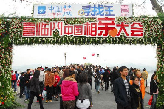 2009年3月29日,中國(guó)國(guó)內(nèi)史上規(guī)模最大的相親會(huì)在杭州西湖白堤上舉行。約8萬名來自全國(guó)各地的未婚男女及其父母親友等進(jìn)入近2公里長(zhǎng)的相親大會(huì)現(xiàn)場(chǎng),在萬人相親快樂牽手、“我要相親”真情告白、公益紅娘“緣”搜索、八分鐘愛情速配、愛情大沖關(guān)、“比武”招親等活動(dòng)環(huán)節(jié)中找尋自己魂?duì)繅?mèng)縈的另一半。