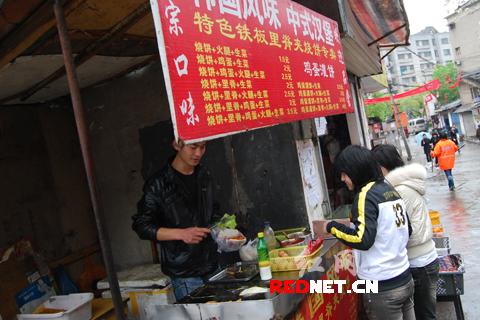 28日下午,毛毛雨。記者到長(zhǎng)沙墮落街一探究竟,在問明來意后,帥哥淡淡一笑稱自己也聽房東說了紅網(wǎng)論壇上關(guān)于他的事,還告訴他在網(wǎng)上火了,自己感到很意外。帥哥自稱姓包,23歲,來自河南信陽(yáng)農(nóng)村一單親貧苦家庭。對(duì)于為何年紀(jì)輕輕來賣燒餅的疑問,小包介紹說,這都是生活所迫,沒有辦法的事,并介紹了一些自己鮮為人知的身世。