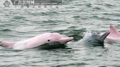 漁民們說(shuō),三娘灣白海豚有黑色的、灰色的、藍(lán)色的、粉紅色的,有五六種顏色,而且皮膚光滑、細(xì)膩,特別是粉紅色,那真是濤濤大海中吉利的點(diǎn)綴,詩(shī)意無(wú)限。
