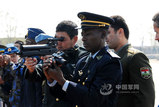 近日,在讀空軍指揮學院的36個友好國家的115名外籍留學學員,來到武警8643部隊參觀見學。武警官兵以高昂的士氣、扎實的作風、過硬的素質為外籍留學學員進行了現(xiàn)場處突課目演示和靜態(tài)裝備展示,讓他們近距離接觸和了解中國武警部隊的訓練、工作和生活情況。這次參觀見學是空軍指揮學院外訓系的一項教學觀摩活動,更是總參、總部為加深了解、促進交流、增進友誼安排的一項重要外事活動。在深入班排,參觀了官兵基礎生活、娛樂設施后,外籍留學學員紛紛表示,中國武警威武的形象和一流的工作標準給他們留下了深刻的印象。 (呂甫琴、朱尚軍 攝影)