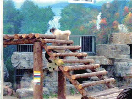 市民胡先生說,前天下午2點半左右,他來到奧運熊貓館參觀,看到一只憨態(tài)可掬、行動笨拙的大熊貓正在展示區(qū)的木制高架梯上溜達(dá)。