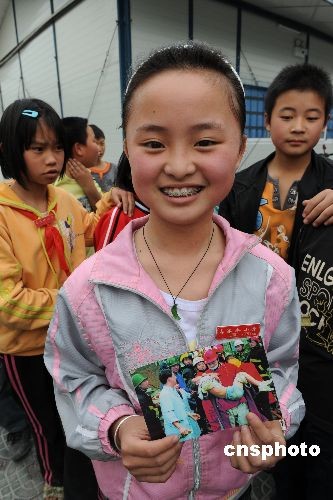 近日,四川德陽什邡市洛水抗震小學(xué)六年級三班小學(xué)生張玉婷手拿去年在5.12地震當(dāng)中自己被救時的圖片,向同學(xué)們講解自己在地震中的經(jīng)歷和感恩之情。2008年5月12日18時,中國石化石油工程西南分公司火速組成64名職工參加的抗震突擊隊(duì),到德陽什邡市洛水學(xué)校支援搶險(xiǎn)。當(dāng)時該校200名學(xué)生被壓在教學(xué)樓下,情況十分緊急。搶險(xiǎn)突擊隊(duì)與當(dāng)?shù)厝罕、四川科新公司職工一道,連續(xù)奮戰(zhàn)20余小時,搜救出100余名幸存學(xué)生。中新社發(fā) 胡慶明 攝
