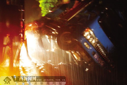 7月19日傍晚,南寧普降暴雨,武鳴縣南武二級路尾燕嶺隧道旁的一段斜坡路上,兩輛貨車在雨中先后翻出路面,其中一輛貨車翻下右邊路基15米,所幸兩車上的司乘人員均無大礙。