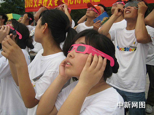 記者在觀測(cè)現(xiàn)場(chǎng)看到,一些天文愛好者早已架起了專業(yè)的望遠(yuǎn)鏡;而許多市民則走起“平民路線”,戴起墨色眼鏡或黑色遮光玻璃片擋住太陽(yáng)光,以便更清晰地看清日食;更有“經(jīng)驗(yàn)老道”的市民,在臉盆里倒上墨汁,觀看太陽(yáng)的倒影,平添了幾分傳統(tǒng)神秘色彩,引來(lái)了無(wú)數(shù)的圍觀者。