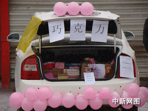 中新網(wǎng)2月14日電(高增平)14日上午,山西呂梁市區(qū)世紀(jì)廣場(chǎng)附近不少護(hù)花使者冒著小雪在擺放的各式各樣的玫瑰花。人們注意到,今天當(dāng)?shù)亟诸^許多過(guò)往車(chē)上也乘機(jī)擺放出巧克力招引著青年人方便為情侶送出禮物。