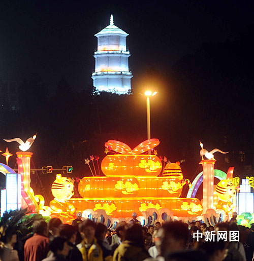 2月25日晚,2010福州南后街元宵燈會(huì)上燈如海人如潮!翱茖W(xué)發(fā)展開新篇”、“文明祥和奏和諧”、“生態(tài)優(yōu)美話宜居”、“閩臺(tái)五緣促交流”等6個(gè)大型主題燈組及1000多盞傳統(tǒng)花燈,集中展示了“揚(yáng)帆海西,福滿榕城”的燈會(huì)內(nèi)涵。壯觀的燈組、精美的花燈,吸引數(shù)以萬(wàn)計(jì)的前來(lái)市民觀燈賞燈,流連忘返。中新網(wǎng)發(fā) 劉可耕 攝
