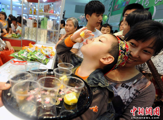 5月22日,絡(luò)繹不絕的福建福州市民逢周六假日,蜂擁而至正在福州海峽國(guó)際會(huì)展中心舉行的第十二屆“海交會(huì)”臺(tái)灣館“臺(tái)灣特色食品展區(qū)” 爭(zhēng)先品嘗、購(gòu)買臺(tái)灣特色美食。當(dāng)日,為期5天的第十二屆海峽兩岸經(jīng)貿(mào)交易會(huì)圓滿落幕。
