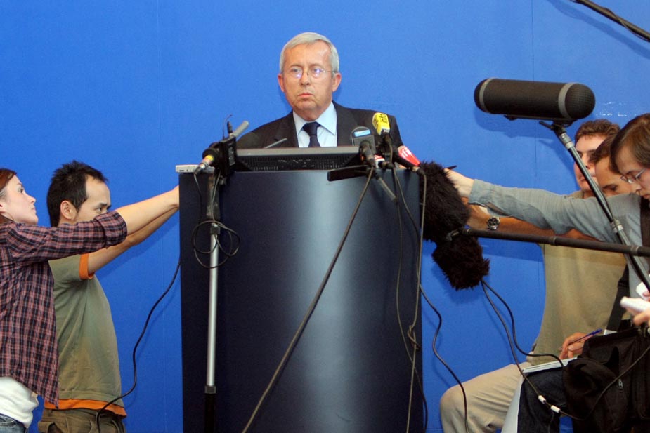 6月1日,法航一架載有228人的空客A330航班在大西洋上空失蹤。其中216名乘客,12名機(jī)組人員。客機(jī)上中國乘客的人數(shù)為9名。這架失蹤的客機(jī)是從巴西里約熱內(nèi)盧飛往法國戴高樂機(jī)場的。圖為法航總經(jīng)理皮埃爾-亨利·古爾容在法國戴高樂機(jī)場舉行法航失蹤客機(jī)的新聞發(fā)布會。
