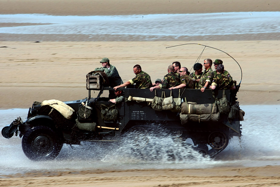 美英法等國士兵穿上二戰(zhàn)時期軍服在法國諾曼底海灘舉行“登陸戰(zhàn)”紀念諾曼底登陸65周年。