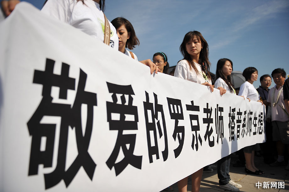 中國(guó)傳媒大學(xué)播音系學(xué)生送別師兄羅京。中新網(wǎng)記者 金碩 攝