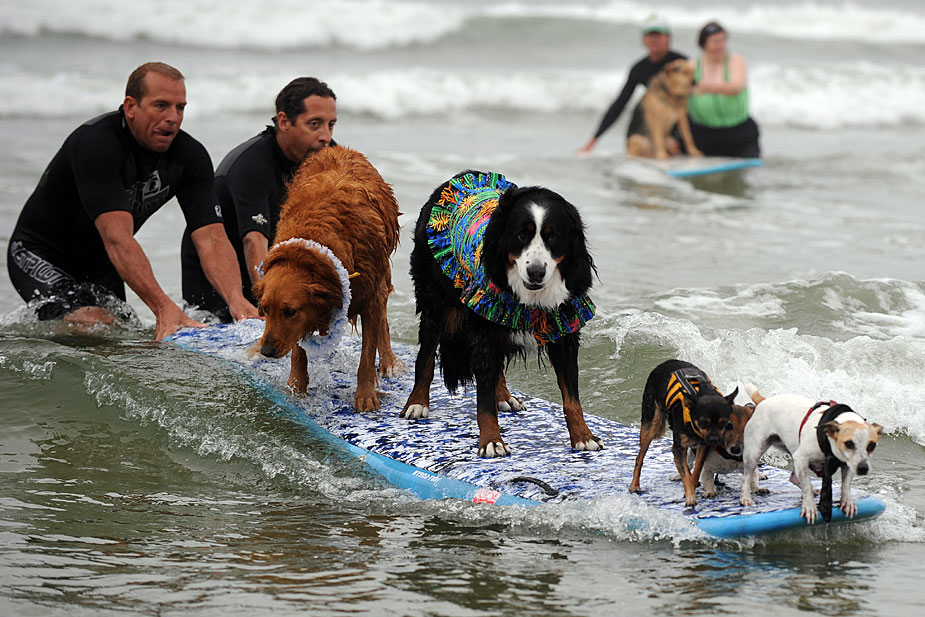 6月20日,在美國加利福尼亞州帝國沙灘舉行了一場小狗沖浪比賽,小狗們表現(xiàn)得十分認(rèn)真。