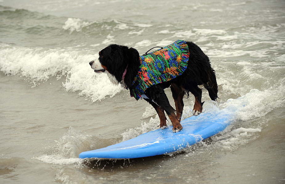 6月20日,在美國加利福尼亞州帝國沙灘舉行了一場(chǎng)小狗沖浪比賽,小狗們表現(xiàn)得十分認(rèn)真。
