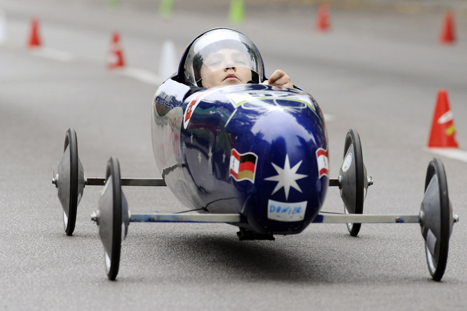6月28日,德國(guó)柏林的德比郡舉行了第50屆“肥皂盒”競(jìng)速賽車,該賽車沒(méi)有動(dòng)力裝置,參賽者親手打造的“賽車”更使比賽妙趣橫生。