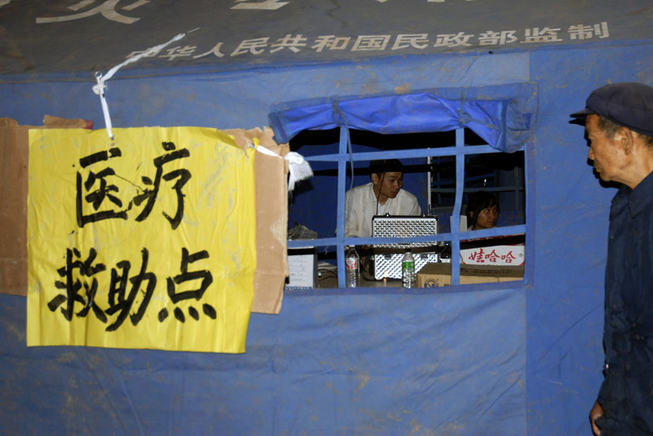 圖為首批進(jìn)入重災(zāi)區(qū)官屯鄉(xiāng)官屯村的醫(yī)療隊(duì)在災(zāi)民臨時(shí)安置點(diǎn)設(shè)置了醫(yī)療救助點(diǎn)。中新社發(fā) 保旭 攝