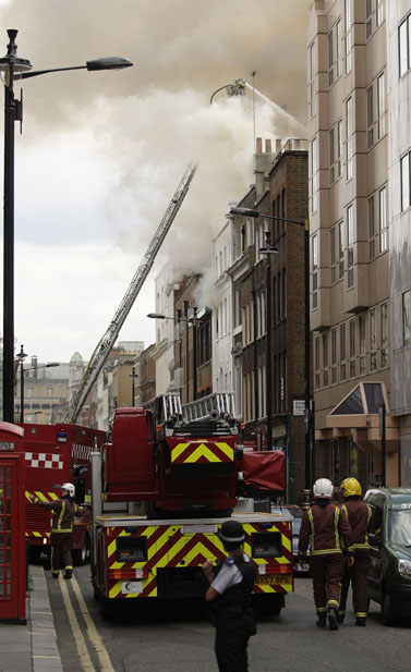 英國倫敦中部蘇豪區(qū)在當?shù)貢r間10日下午2時左右發(fā)生火警,起火的5層高商業(yè)樓宇被嚴重焚毀,現(xiàn)場冒出大量濃煙,在倫敦市內(nèi)多處均清楚可見。消防部門派出12輛消防車及60名消防員進行灌救。