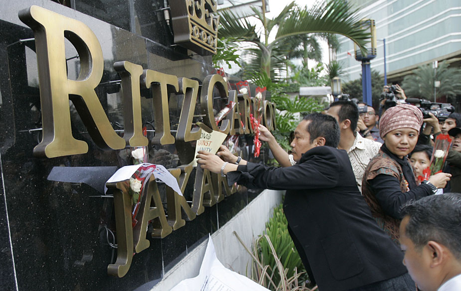 7月18日,印度尼西亞首都雅加達的民眾紛紛來到發(fā)生爆炸的萬豪酒店和麗嘉酒店,向死難者獻花表示哀悼。