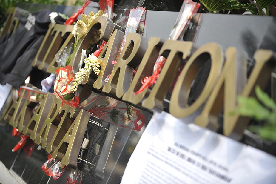 7月18日,印度尼西亞首都雅加達的民眾紛紛來到發(fā)生爆炸的萬豪酒店和麗嘉酒店,向死難者獻花表示哀悼。