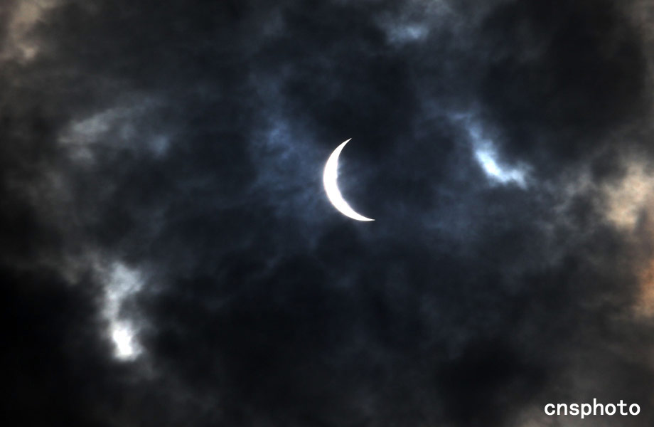 7月22日上午,由于連云港天空云層較厚,給觀察拍攝日全食帶來困難。但通過耐心等待,日全食演變的部分過程還能透過云層時(shí)斷時(shí)續(xù)地看到。因受地理位置等因素的影響,連云港市只能看到90%的日偏食。