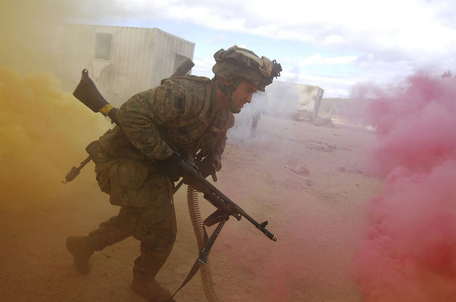 7月22日,澳大利亞羅克漢普頓,美國海軍陸戰(zhàn)隊(duì)與澳大利亞士兵參加“馬刀附身符行動”聯(lián)合巷戰(zhàn)軍事演習(xí)。此次演習(xí)的目的旨在提高兩國軍隊(duì)的巷戰(zhàn)作戰(zhàn)能力及美澳之間的協(xié)同作戰(zhàn)水平。