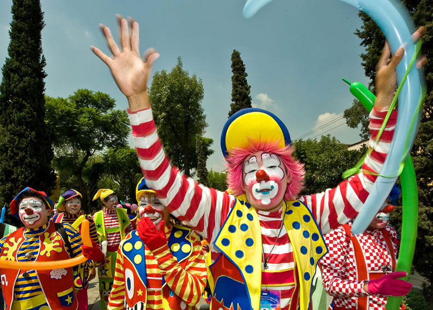 7月22日,幾百名“小丑”聚集在墨西哥首都墨西哥城的街頭參加一次小丑大游行,給人們帶來了歡聲笑語。