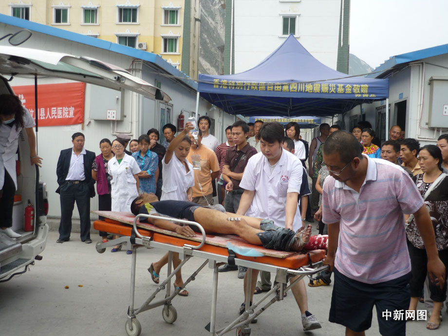 25日凌晨四點(diǎn)鐘左右,汶川縣境內(nèi)國道二一三線徹底關(guān)大橋被山上飛下來的巨石砸斷,已造成100米的橋面坍塌,7輛汽車受損,12人不同程度受傷,3人死亡,都汶路通行中斷。圖為汶川縣人民醫(yī)院正在積極搶救傷員。 汶新 攝