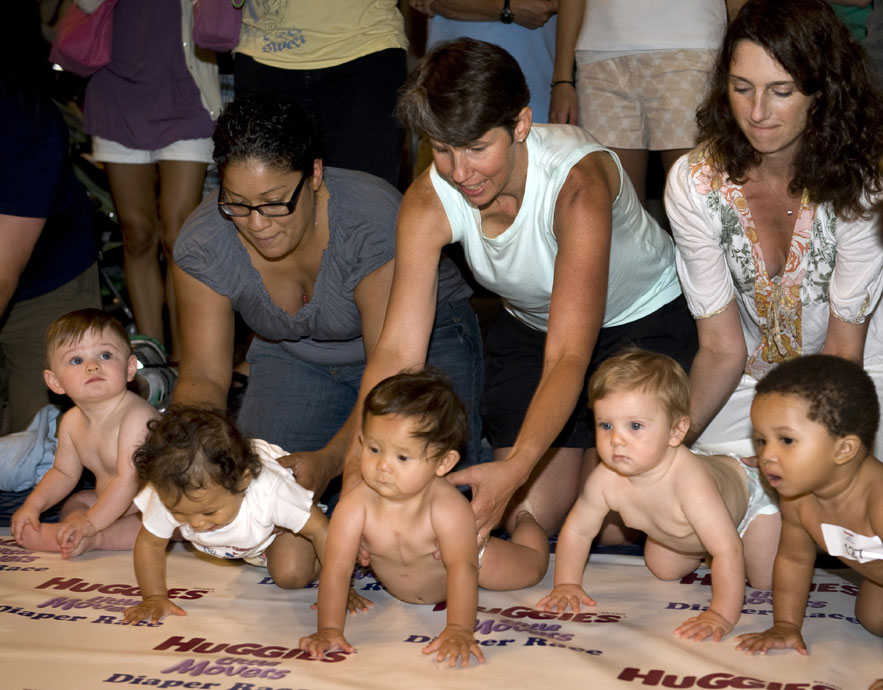 當?shù)貢r間7月24日,美國紐約舉行了一場趣味橫生的小寶寶爬行大賽,獲得冠軍的小寶寶贏得了一年免費的紙尿褲。