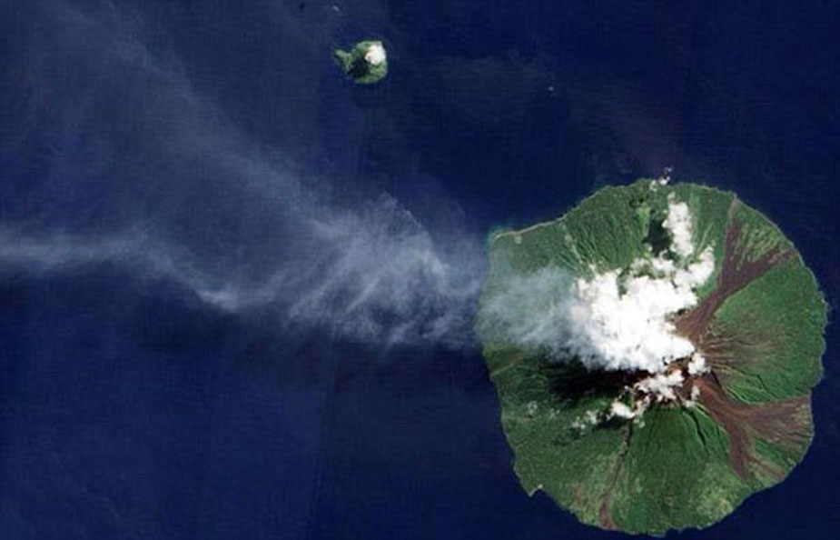 英國媒體近日公布了一組衛(wèi)星上拍攝到的地球自然景觀的照片,領觀者頗感震撼。圖為從衛(wèi)星上拍到的火山噴發(fā)。