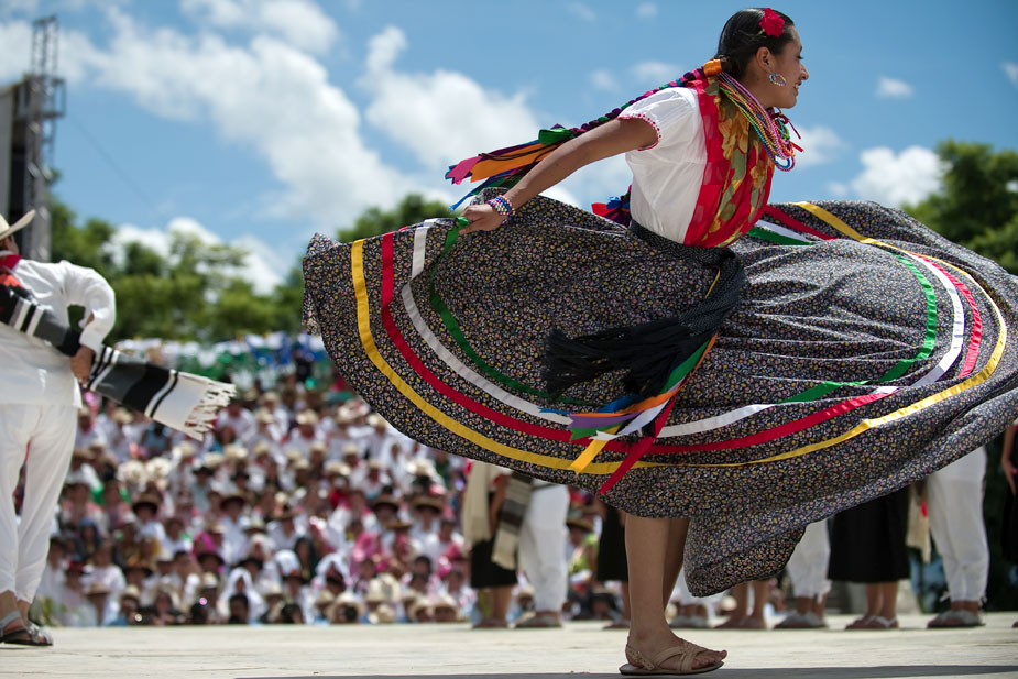 每年7月的最后兩個(gè)星期一是瓦哈卡聞名世界的“蓋拉蓋查節(jié)(Guelaguetza)”,來自瓦哈卡州各地、各具特色的印第安部落推選出具有代表性的舞蹈隊(duì),在瓦哈卡城外的弗爾丁山上載歌載舞,同時(shí)也為前來觀看的世界各地游客獻(xiàn)上本部落的土特產(chǎn)。