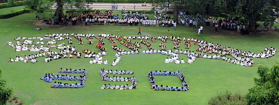 7月28日,約2000名學(xué)生在新德里化妝成老虎的臉譜,圍坐成老虎的造型,與官員和野生動(dòng)物專家們一起呼吁人們保護(hù)孟加拉虎和其他野生動(dòng)物。