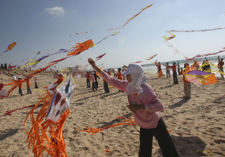 7月30日,加沙地帶的6000名巴勒斯坦兒童共同在加沙北部的海灘上放飛了3000多只五顏六色的風(fēng)箏,打破了同時放飛最多只風(fēng)箏的吉尼斯世界紀(jì)錄。