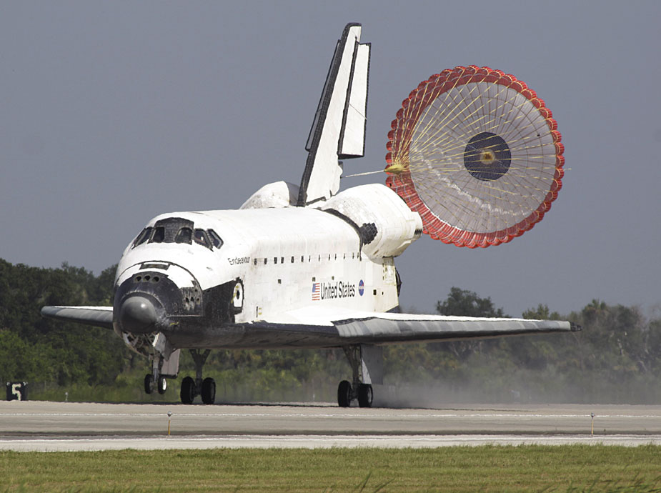 圖為奮進(jìn)號(hào)航天飛機(jī)著陸瞬間。