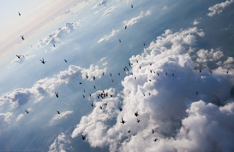 據(jù)英國媒體8月2日報(bào)道,美國上空108名傘降者從1.8萬英尺(約5.48公里)高空以180英里每小時(shí)時(shí)速跳下,并在空中組成各種圖形,欲打破世界紀(jì)錄。