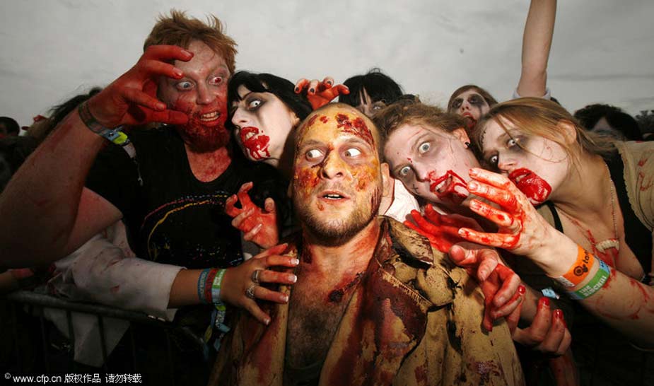 2009年8月6日,英國赫里福德郡Eastnor城堡,人們化裝成“僵尸”出現(xiàn)在大寒音樂節(jié)上,欲打破同一地點聚集最多“僵尸”的世界紀(jì)錄。