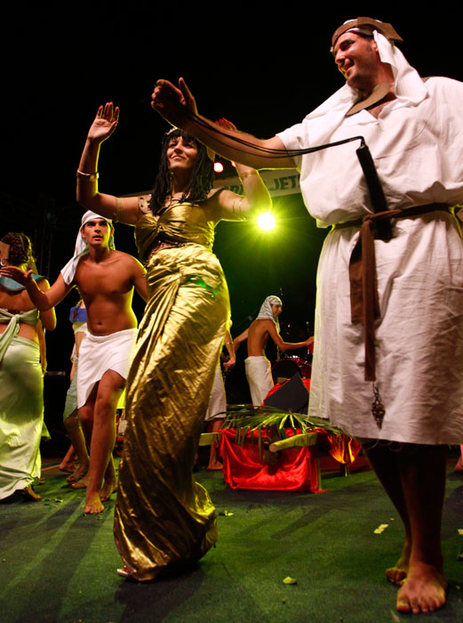 圖為市民穿上演出服裝參加狂歡節(jié)進(jìn)行表演。