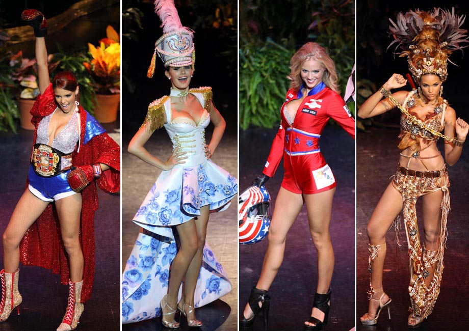 8月10日,2009年世界小姐大賽上,來自84個(gè)國(guó)家和地區(qū)的佳麗進(jìn)行民族服飾的展示,各國(guó)佳麗分別穿著含有自己民族風(fēng)格元素的時(shí)尚晚裝亮相,現(xiàn)場(chǎng)頓時(shí)色彩斑斕,美不勝收。
