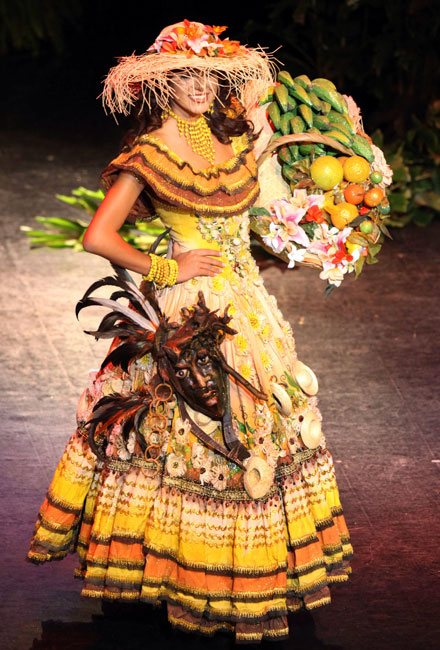 8月10日,2009年世界小姐大賽上,來(lái)自84個(gè)國(guó)家和地區(qū)的佳麗進(jìn)行民族服飾的展示,各國(guó)佳麗分別穿著含有自己民族風(fēng)格元素的時(shí)尚晚裝亮相,現(xiàn)場(chǎng)頓時(shí)色彩斑斕,美不勝收。