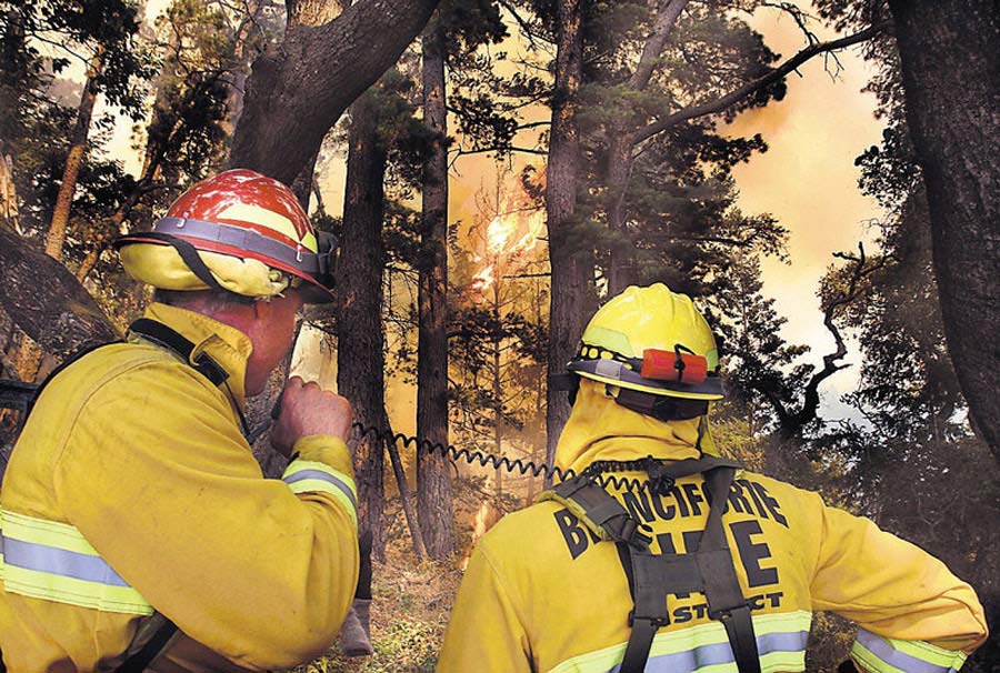 2009年8月13日,加州中北部的圣塔克魯茲開(kāi)始燃起山火,幾千名陸續(xù)趕到的消防隊(duì)員參加滅火。