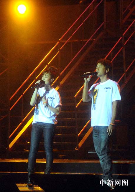 圖為李克勤與謝安琪現(xiàn)場(chǎng)演出。