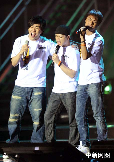 圖為胡彥斌、側(cè)田、張敬軒現(xiàn)場演出。