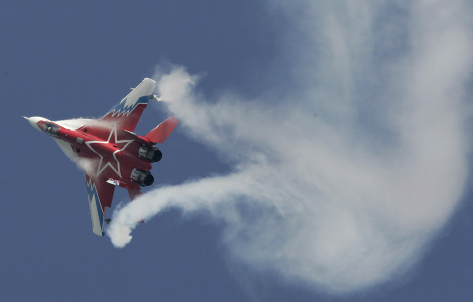 8月18日,2009莫斯科國際航空航天展(MAKS-2009)開幕。圖為精彩的飛行表演。