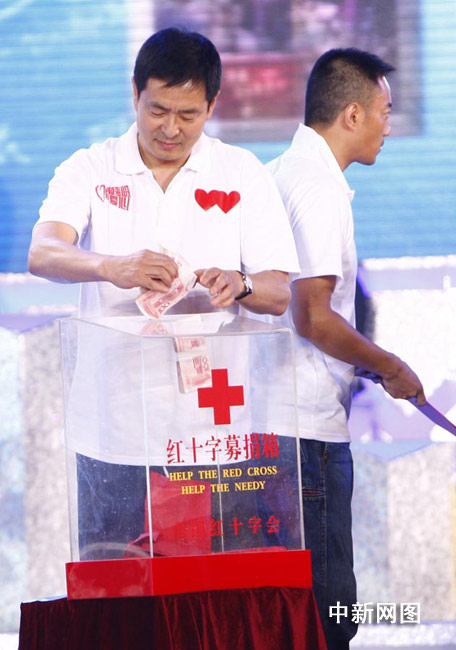“跨越海峽的愛心”——大陸同胞援助臺(tái)灣“莫拉克”臺(tái)風(fēng)受災(zāi)同胞賑災(zāi)晚會(huì)在北京舉行。眾多文體界明星在現(xiàn)場(chǎng)亮相,獻(xiàn)出一片愛心。圖為演員濮存昕在晚會(huì)現(xiàn)場(chǎng)捐款。中新社發(fā) 杜洋 攝