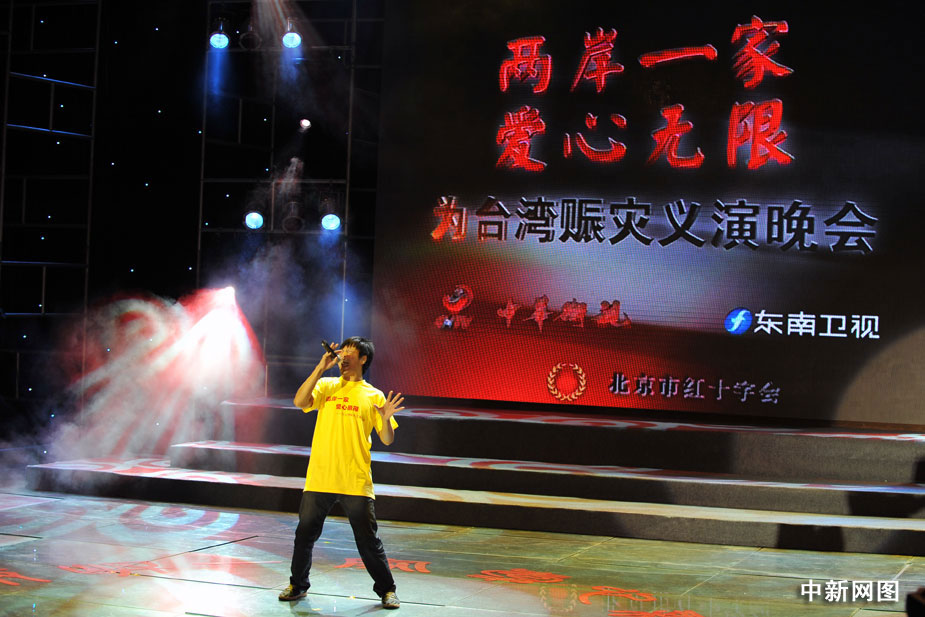 8月22日晚,北京舉行“兩岸一家 愛心無限”為臺灣同胞賑災義演晚會,大陸和臺灣演藝界明星登臺為臺灣災區(qū)同胞共獻愛心,晚會臨近結(jié)束時共收到各界捐款3000多萬元。中新網(wǎng)記者 金碩 攝