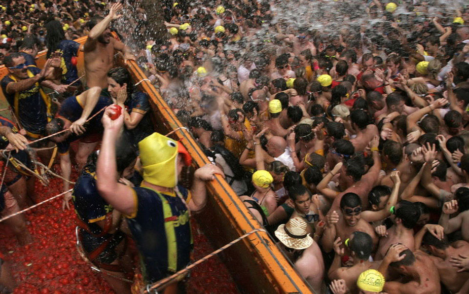 8月26日,西班牙東南部小鎮(zhèn)Bunol當(dāng)日迎來傳統(tǒng)的西紅柿節(jié)。大約4萬名狂歡者在1小時(shí)內(nèi)扔掉了11萬公斤西紅柿。來源:中國新聞網(wǎng)