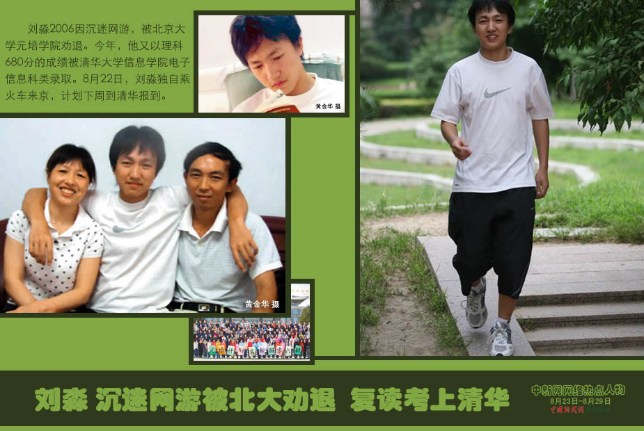 中新網(wǎng)本周熱點人物之——劉淼 劉淼2006因沉迷網(wǎng)游,被北京大學元培學院勸退。今年,他又以理科680分的成績被清華大學信息學院電子信息科類錄取。8月22日,劉淼獨自乘火車來京,計劃下周到清華報到。