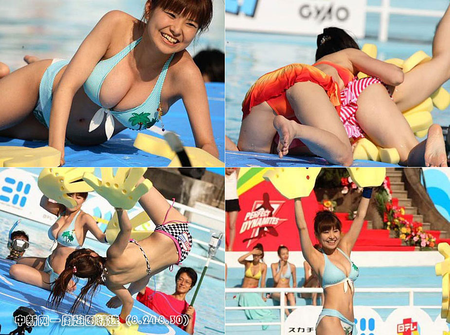 炎炎夏日,日本的比基尼美女們。在水上來一場趣味摔跤大賽,令人體會(huì)到夏日的激情,又不失一分涼爽。圖片來源:金羊網(wǎng)