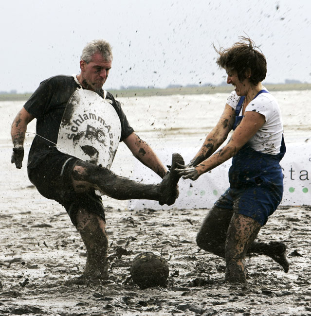 當(dāng)?shù)貢r間8月30日,德國北部海邊小鎮(zhèn)Brunsbuettel的泥灘上進行一場別開生面的泥地足球賽。男女“球員”混合在一起,泥地中盡情撒野,享受著不一樣的樂趣。