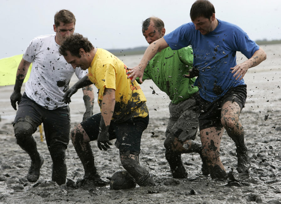 當?shù)貢r間8月30日,德國北部海邊小鎮(zhèn)Brunsbuettel的泥灘上進行一場別開生面的泥地足球賽。男女“球員”混合在一起,泥地中盡情撒野,享受著不一樣的樂趣。