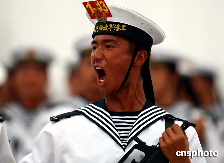 9月3日,解放軍官兵在位于北京郊區(qū)的一處徒步方隊閱兵村內(nèi)訓練。今年國慶節(jié)將舉行新中國成立60周年國慶首都盛大閱兵儀式。中新社發(fā) 宋吉河 攝