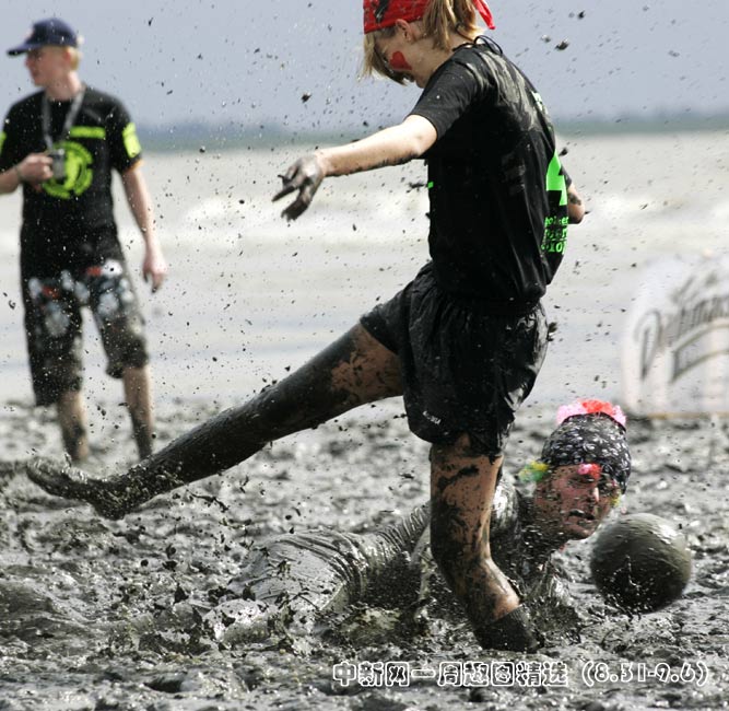 德國(guó)北部海邊小鎮(zhèn)Brunsbuettel的泥灘上進(jìn)行一場(chǎng)別開(kāi)生面的泥地足球賽。圖片來(lái)源:中國(guó)新聞網(wǎng)